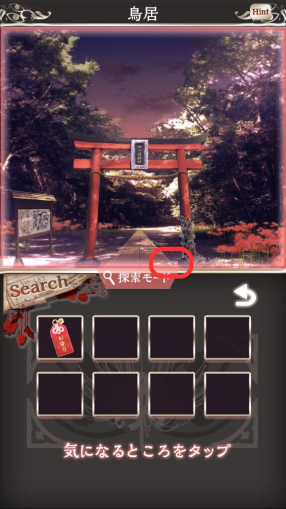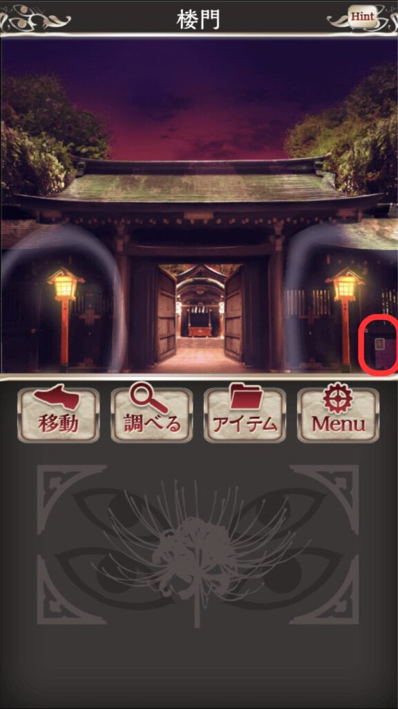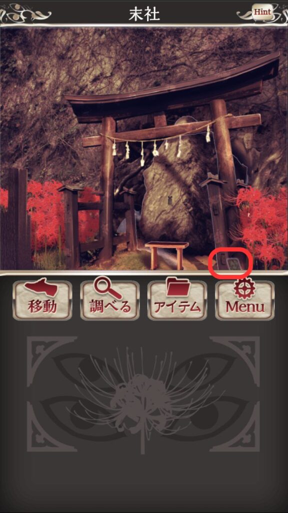 →「声のする方へ行く」を選び、扉の左下を調べる
